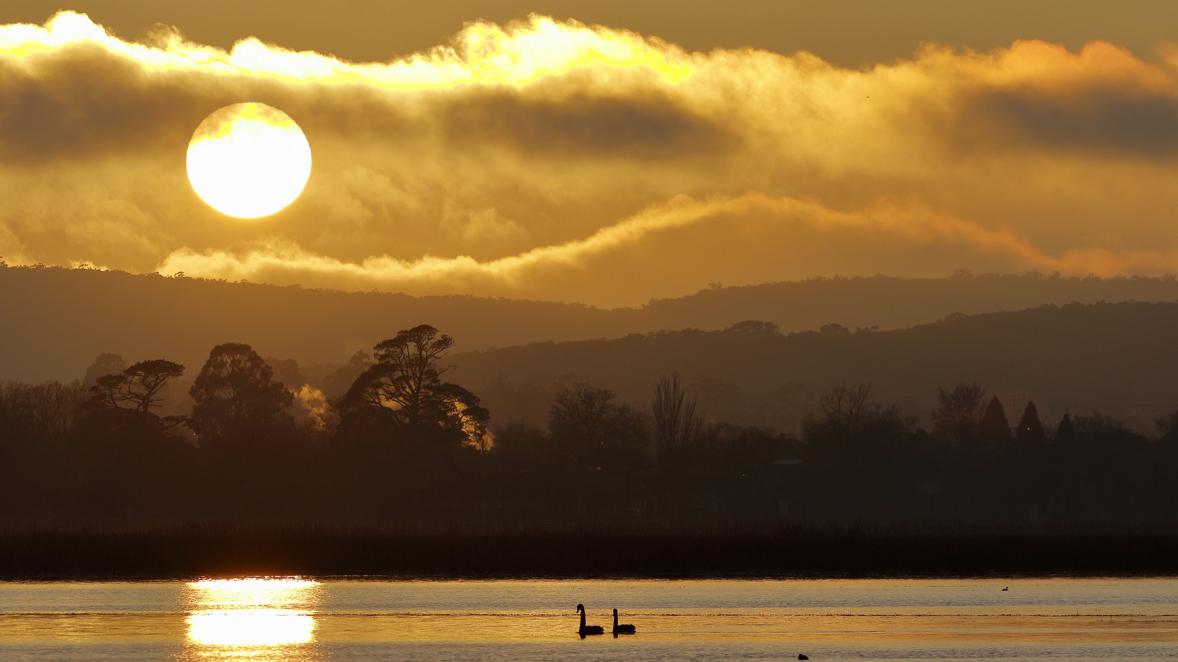 Swans birds lake image 4k wallpaper Description :