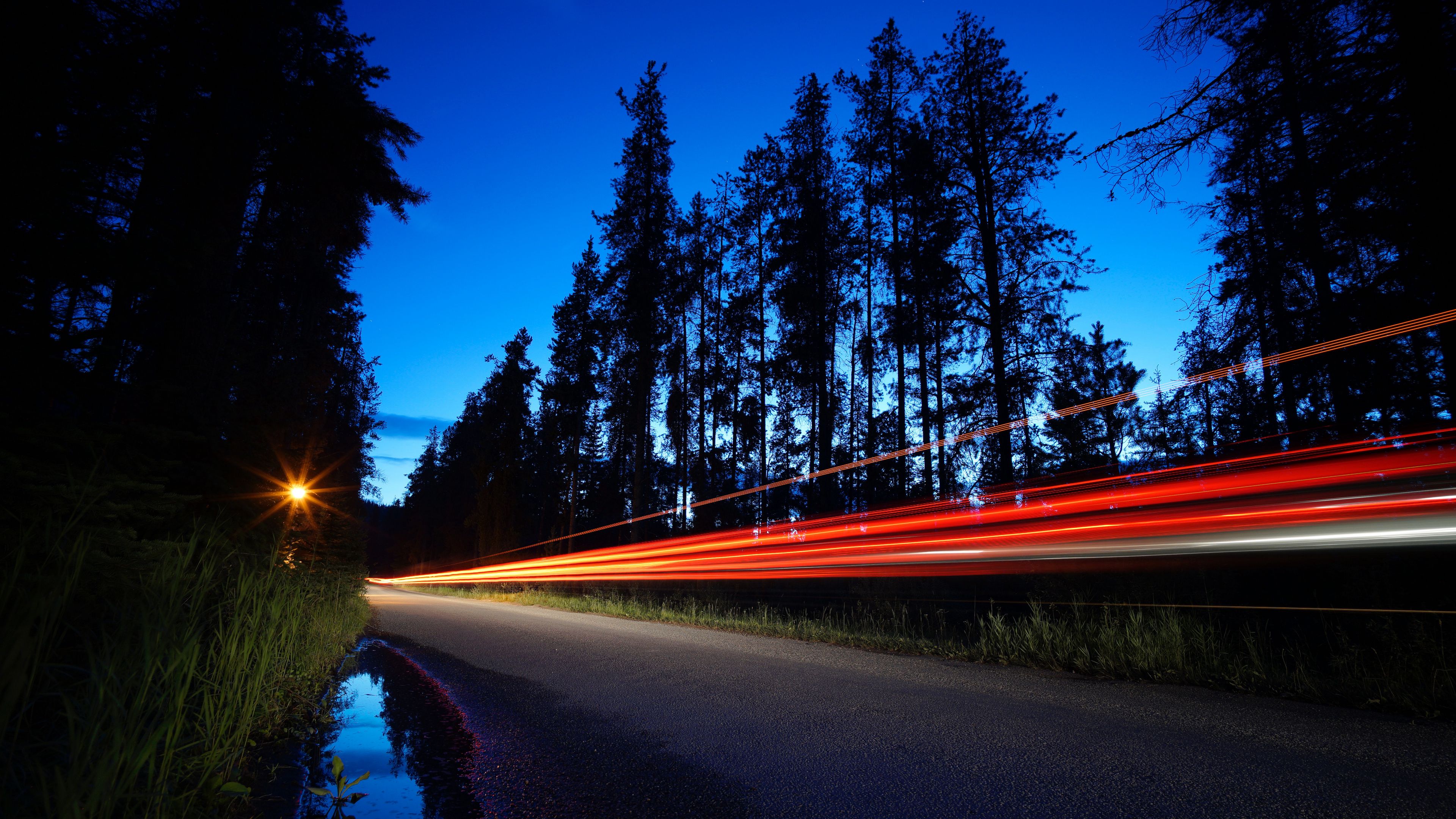 Trees road long exposure 4k wallpaper Description :