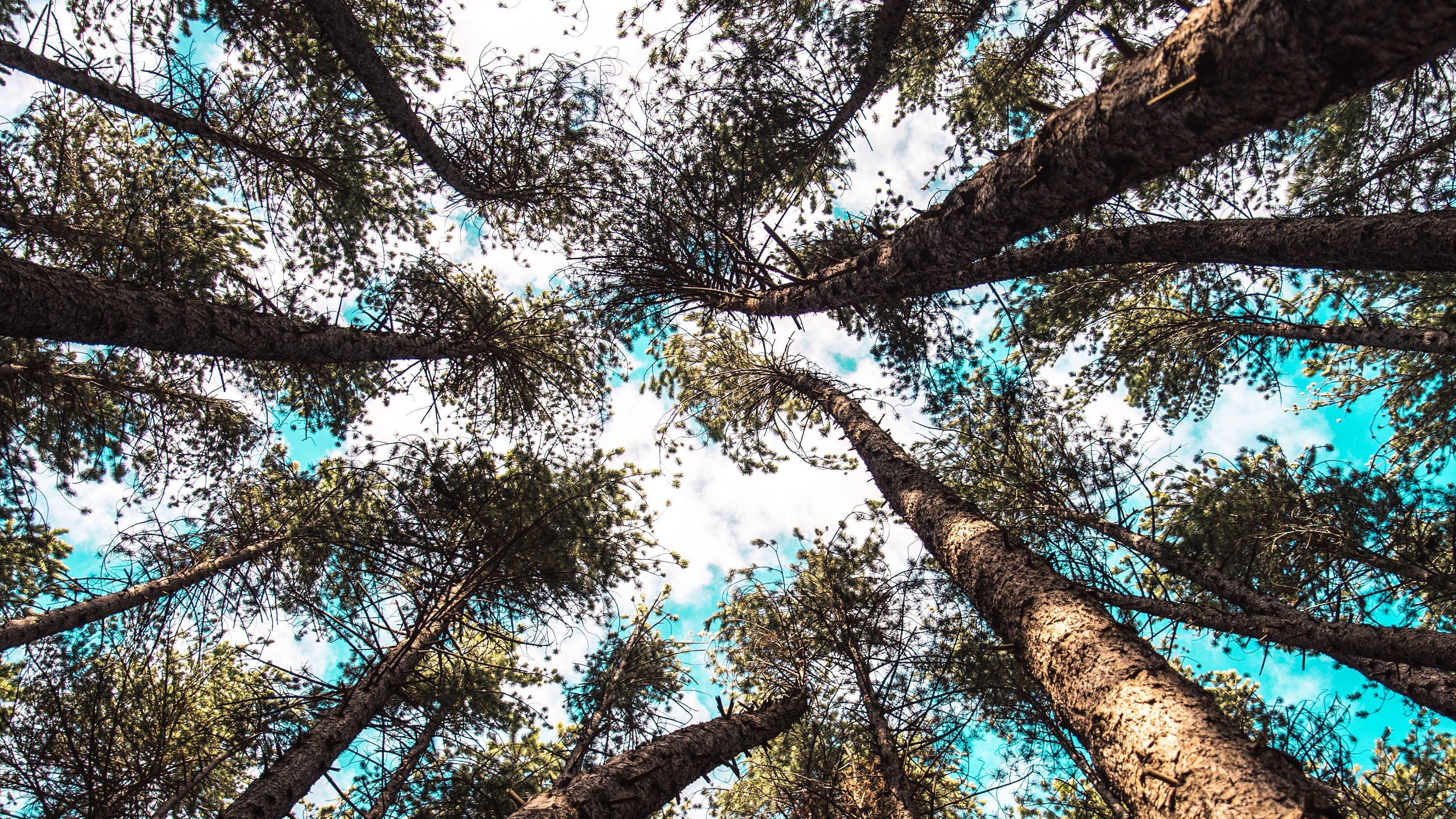 Trees tops bottom view image 4k wallpaper