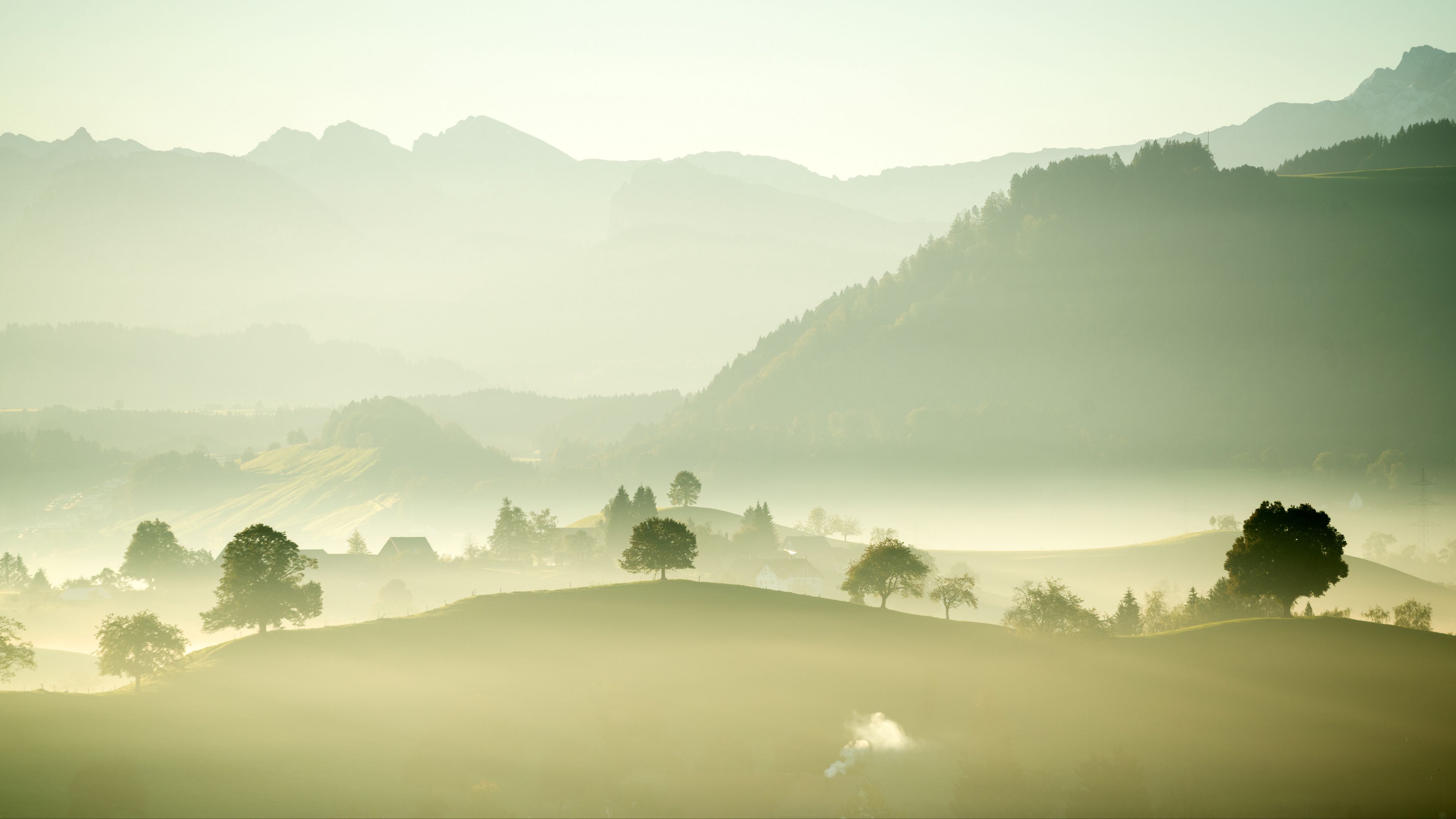 Valley fog trees 4k wallpaper