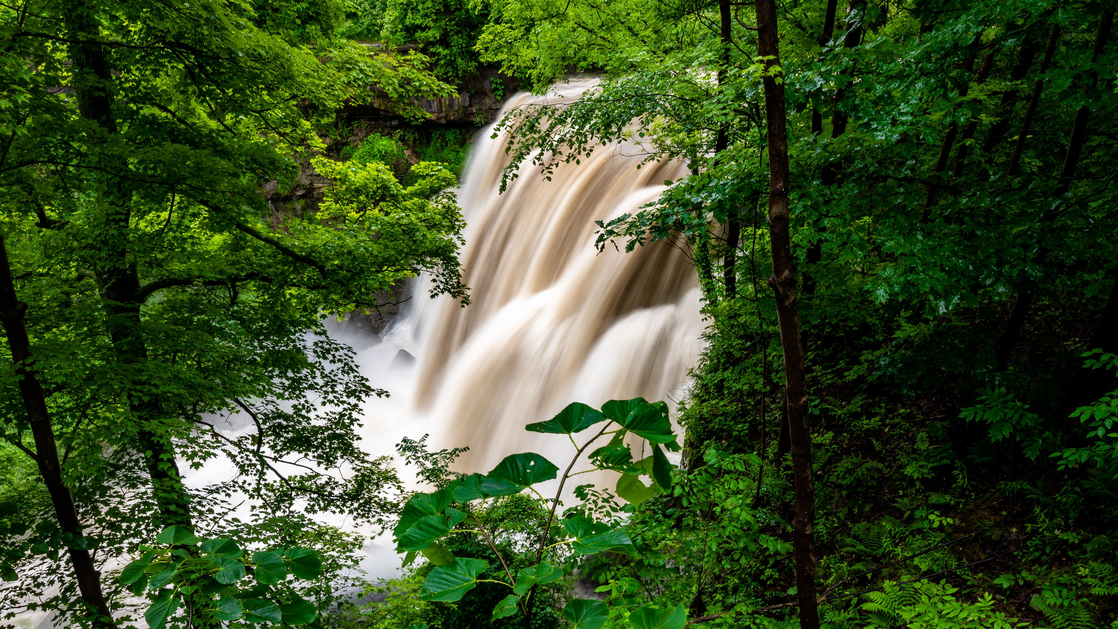 Waterfall forest trees image 4k wallpaper