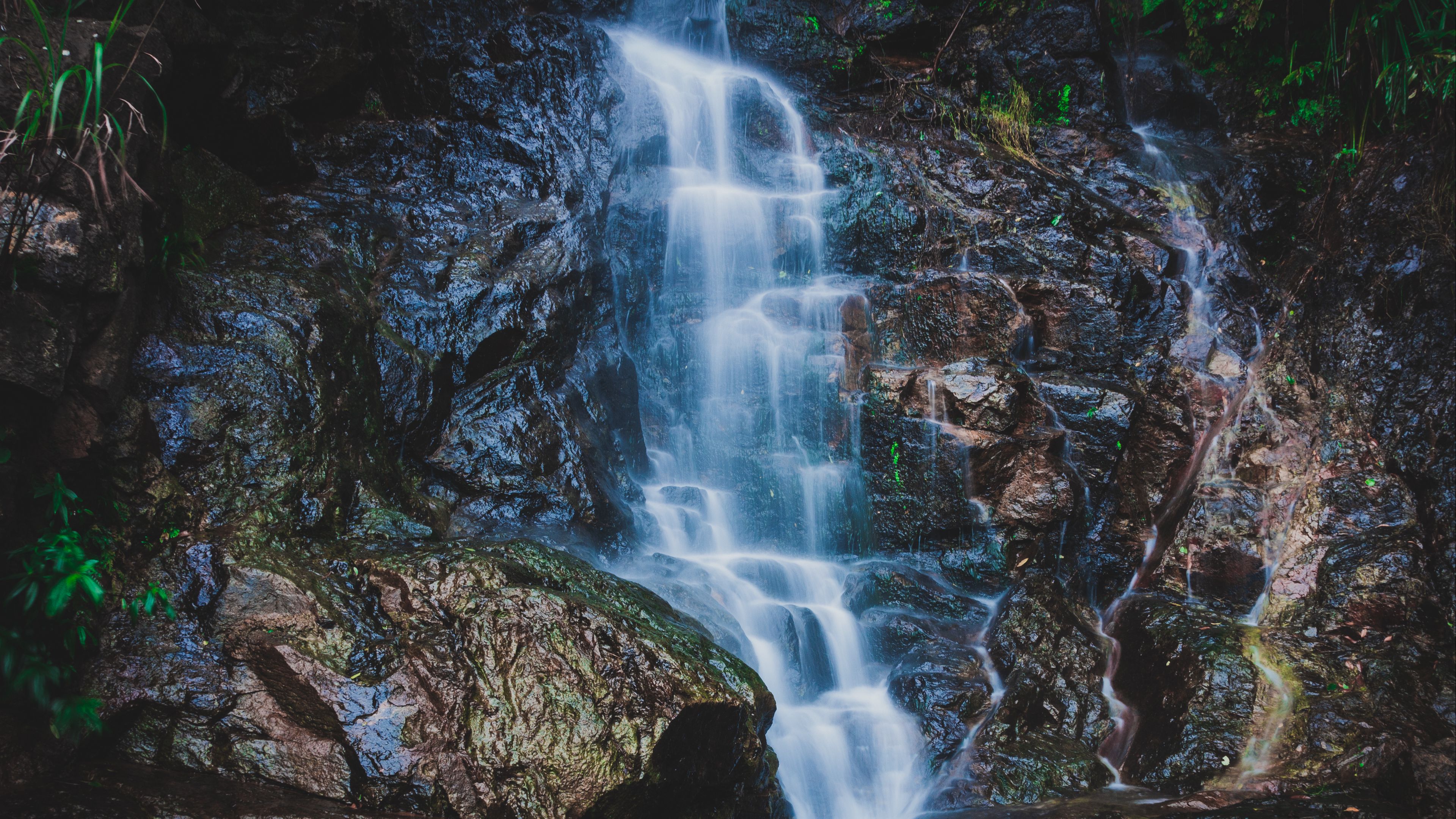 Waterfall rocks spray 4k wallpaper