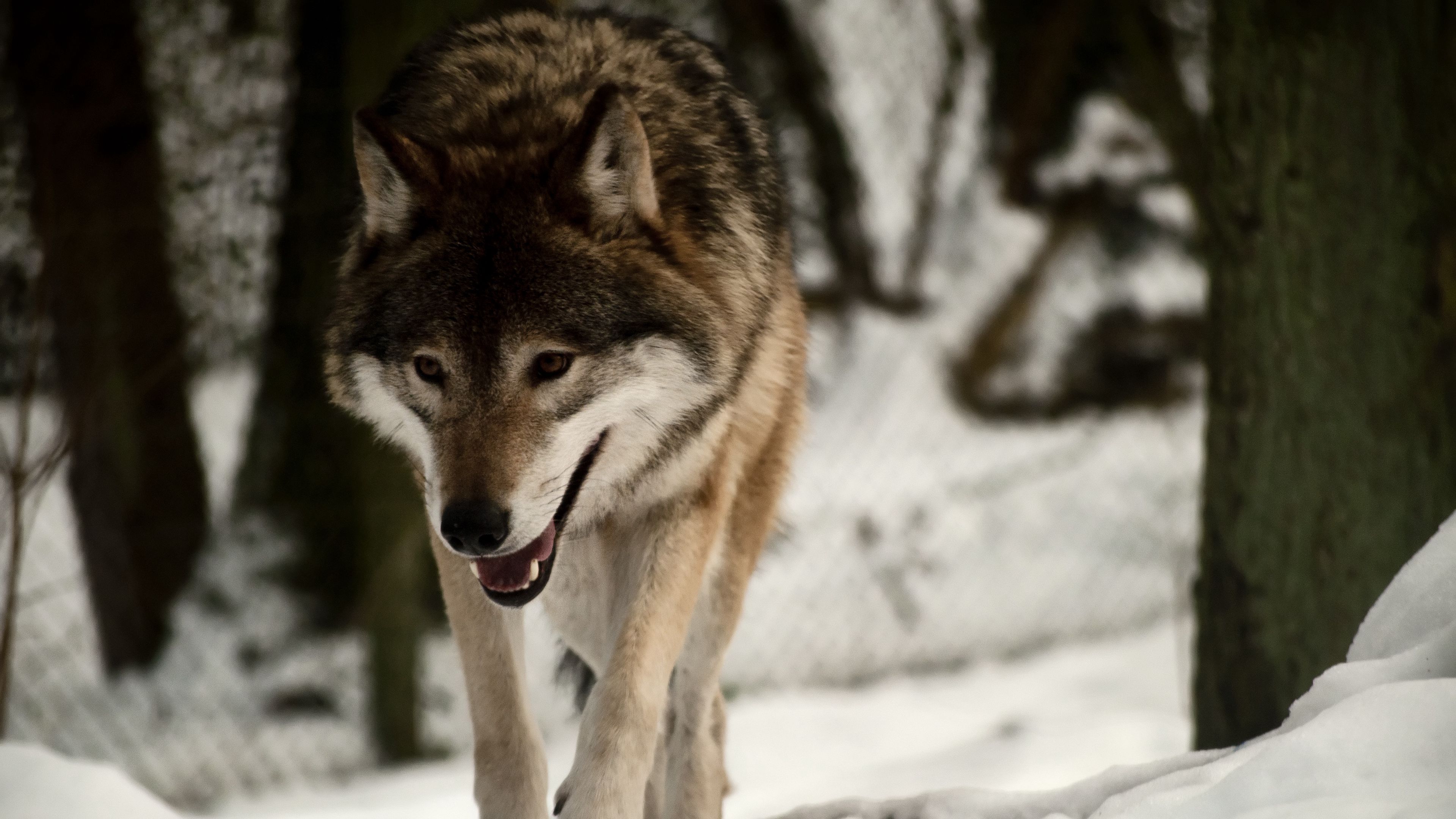 Wolf predator snow walk 4k wallpaper