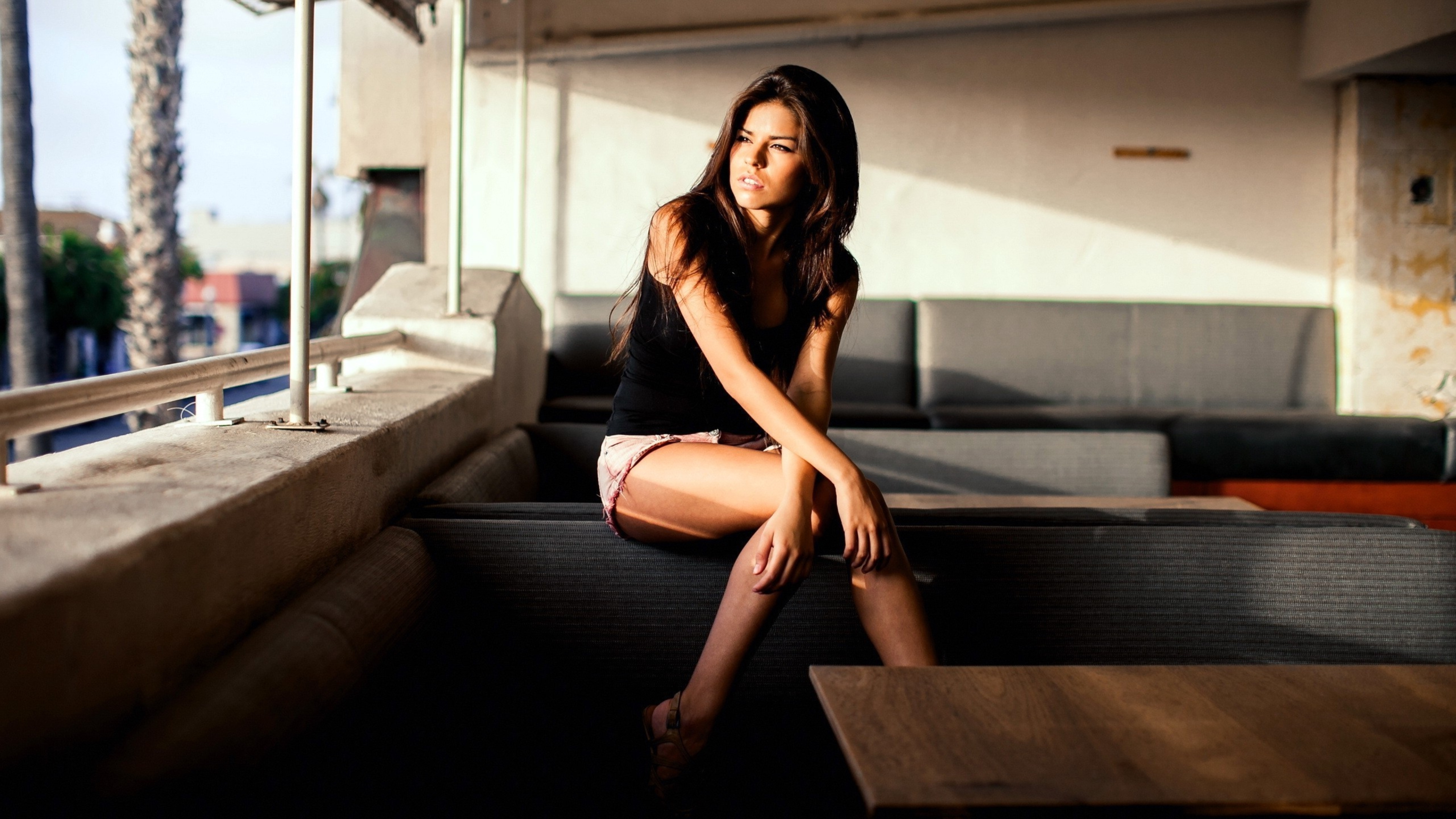 Woman looking out the balcony 8k wallpaper Description :
