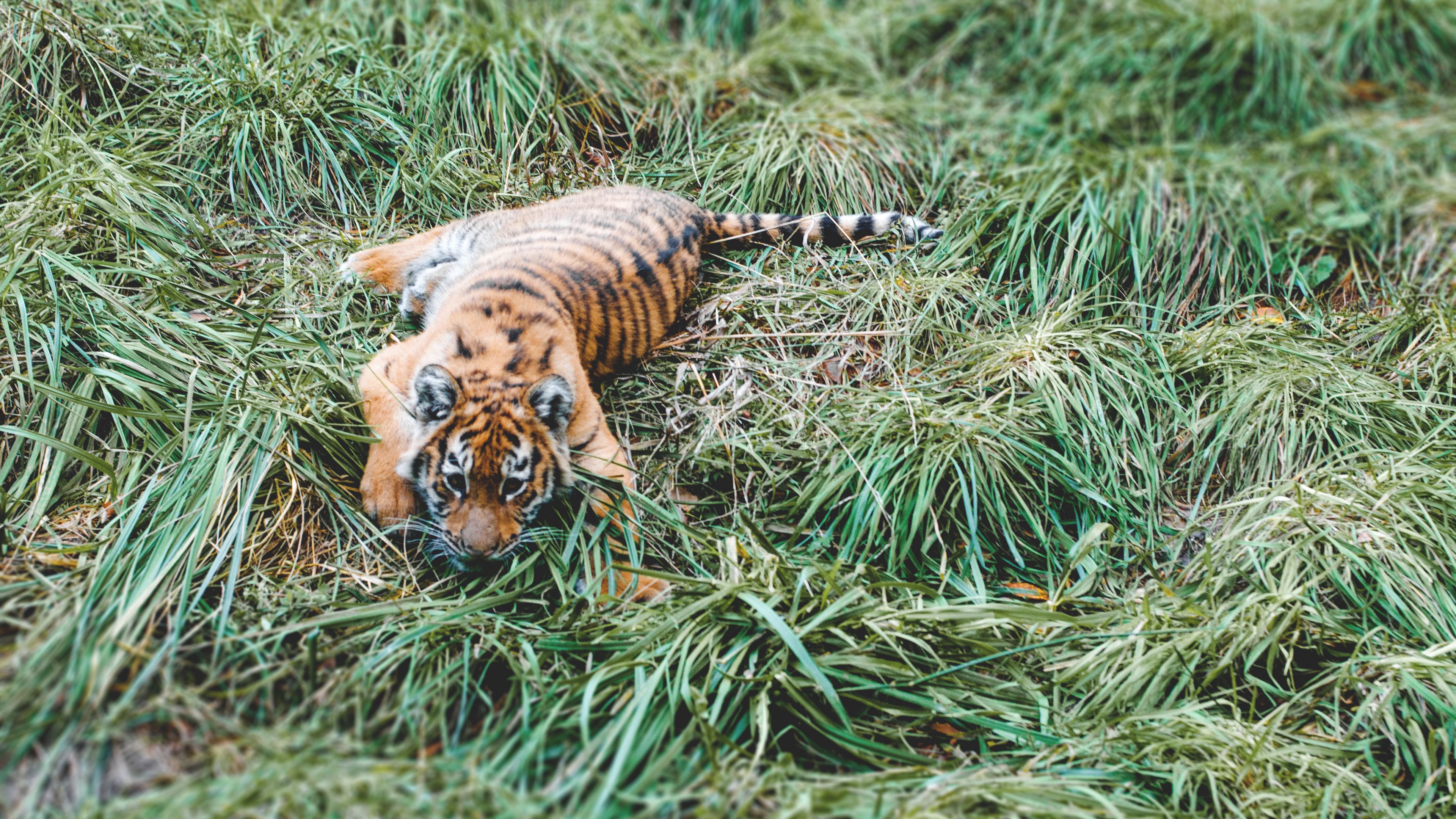 Tiger Cub Tiger Predator Grass Lies HD & 4K Wallpaper (3840x2160)