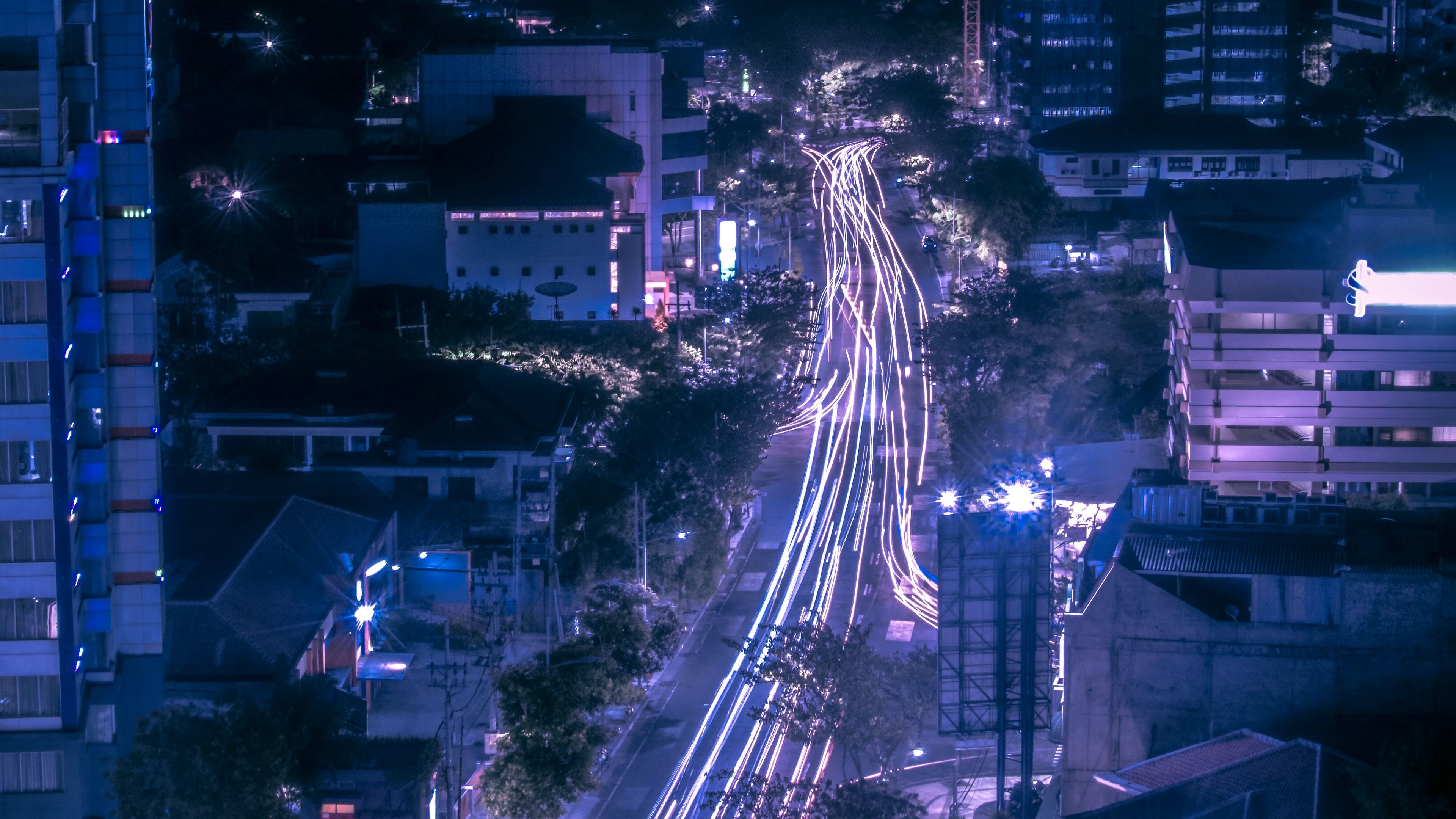 Night City Road Aerial View Wallpaper - HD & 4K Backgrounds: