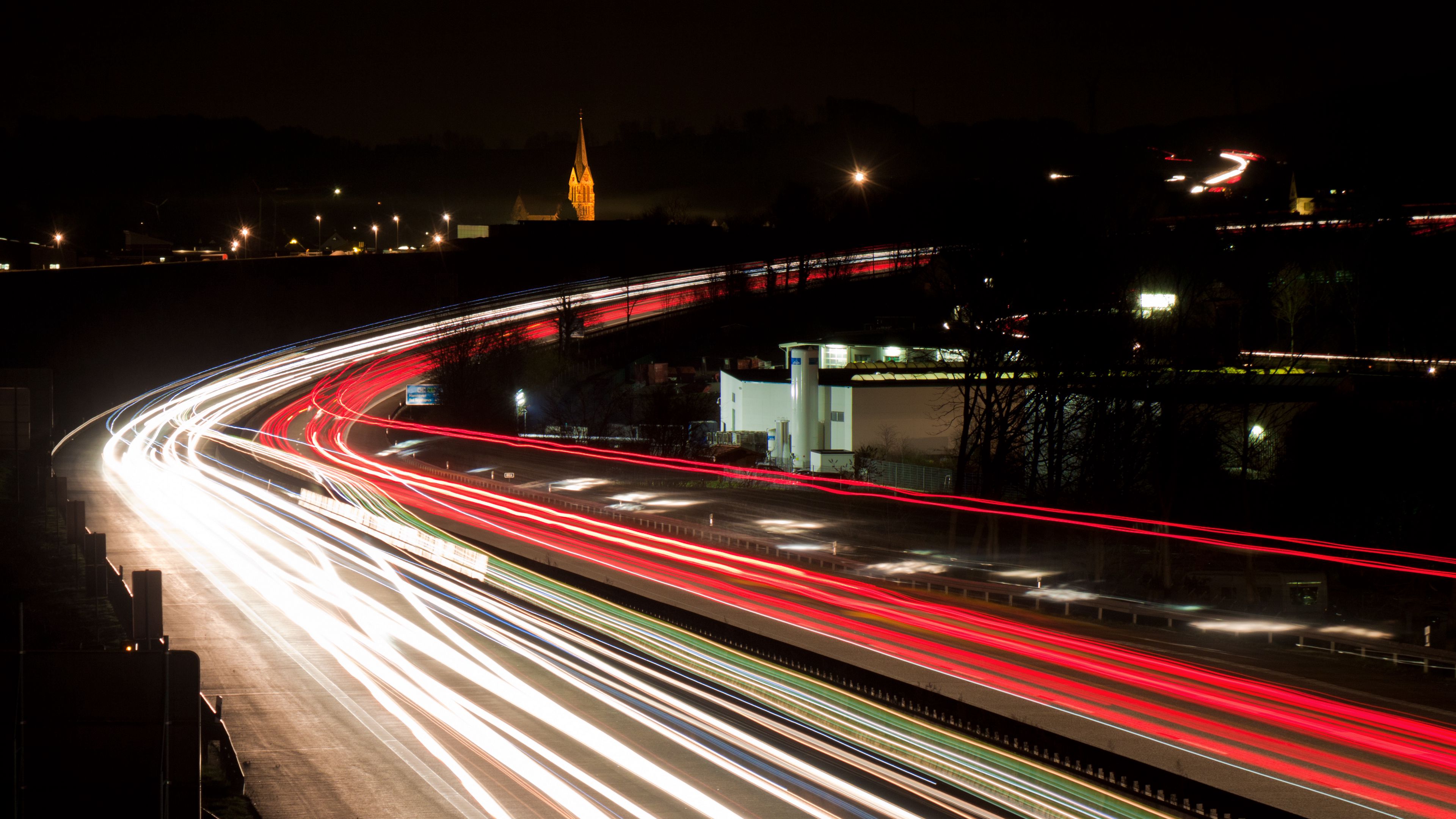 Road Turn Lights HD & 4K Wallpaper (3840x2160)