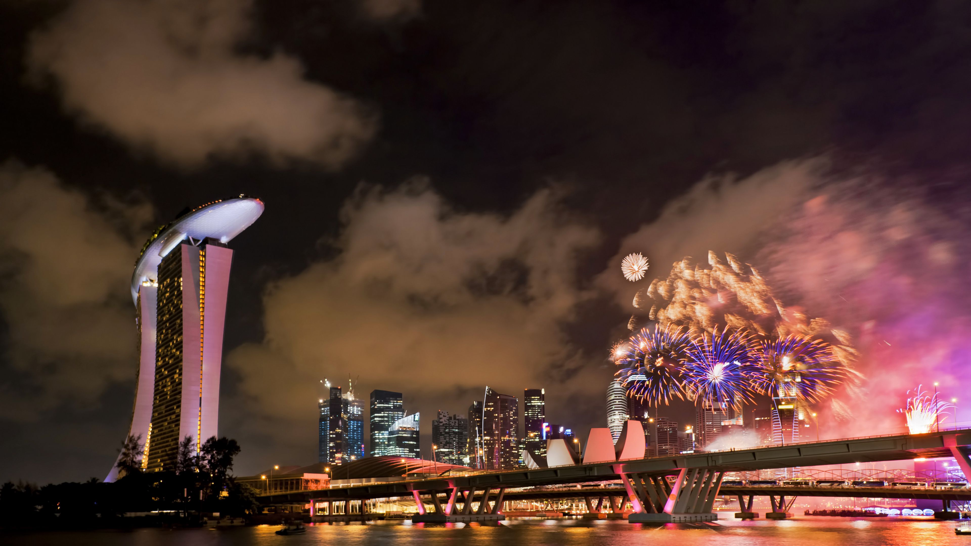 Singapore Holiday Fireworks Bridg HD & 4K Wallpaper (3840x2160)