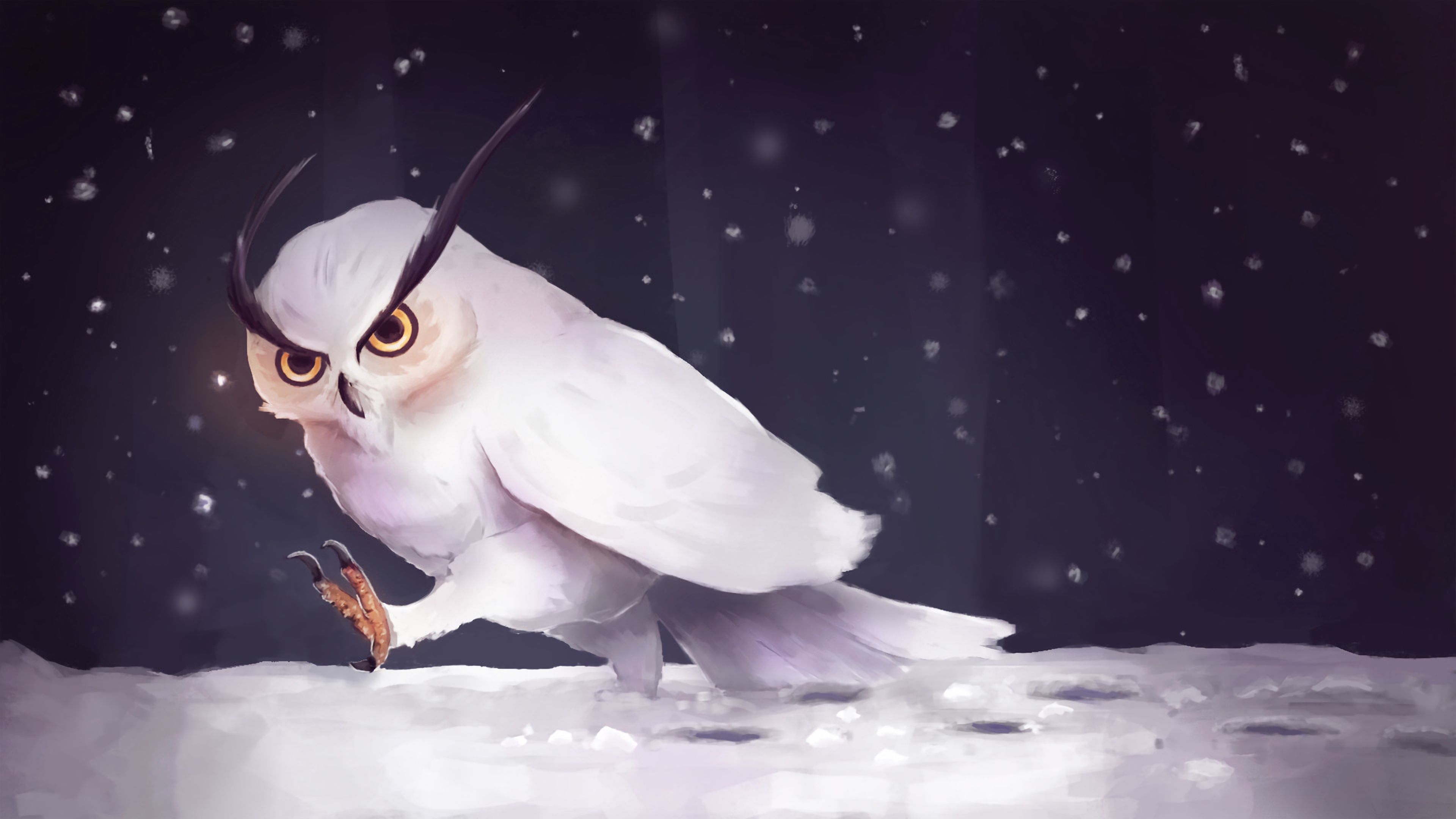 Owl Snow Art HD & 4K Wallpaper (3840x2160)