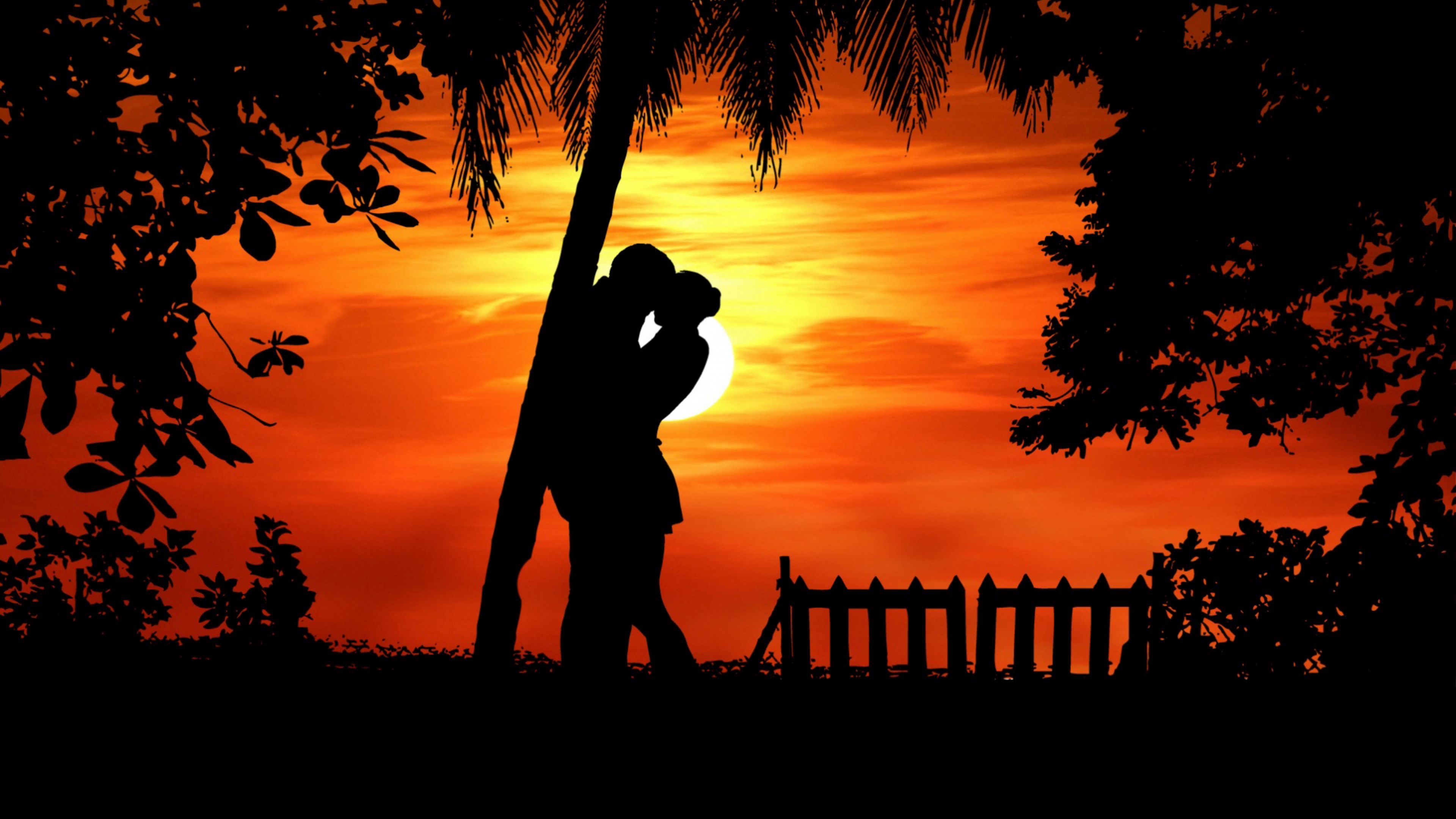 Couple Silhouettes Hugs Image Wallpaper - HD & 4K Backgrounds: