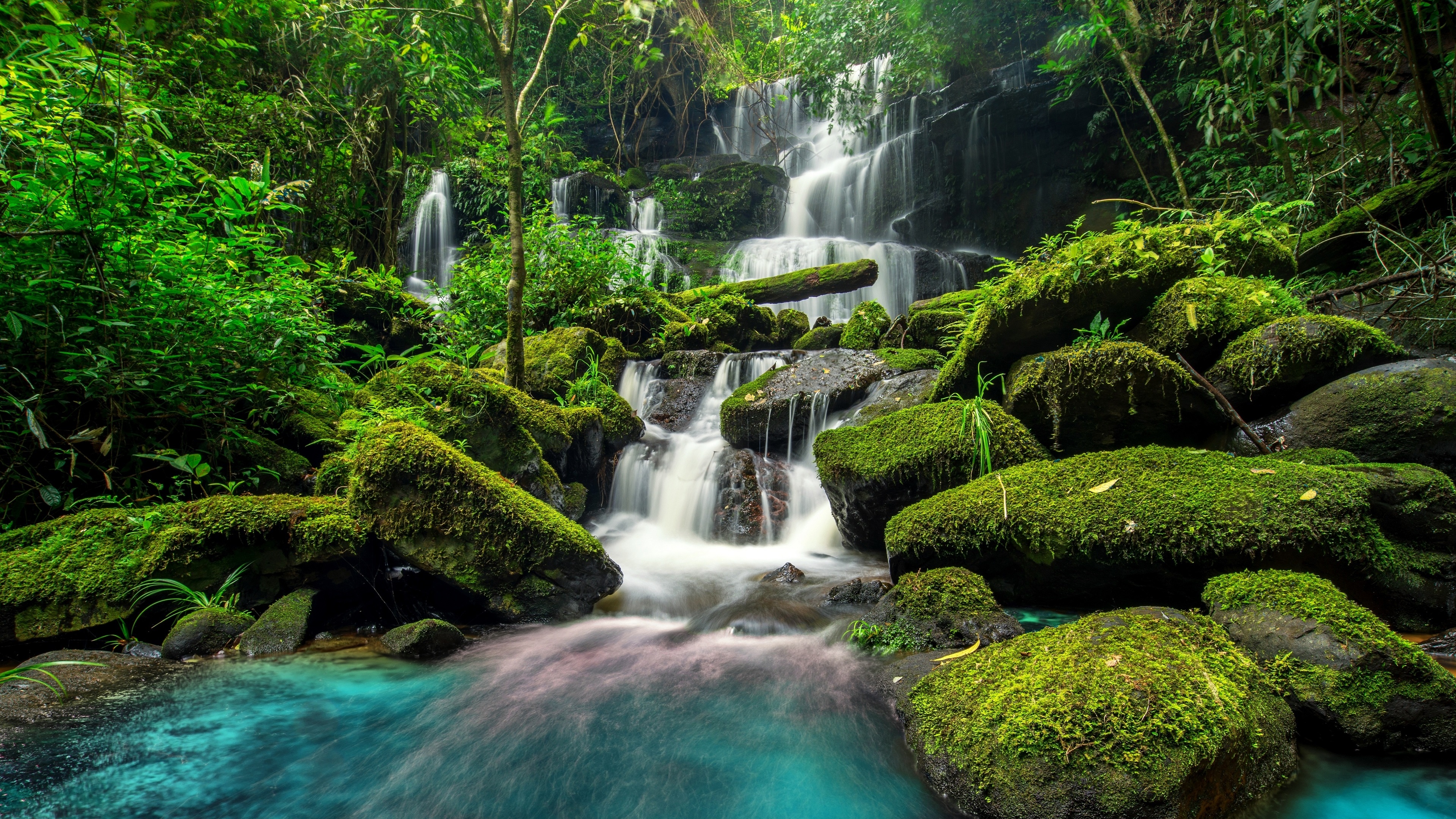 River Nature Waterfall Moss 4k Wallpaper wallpaper