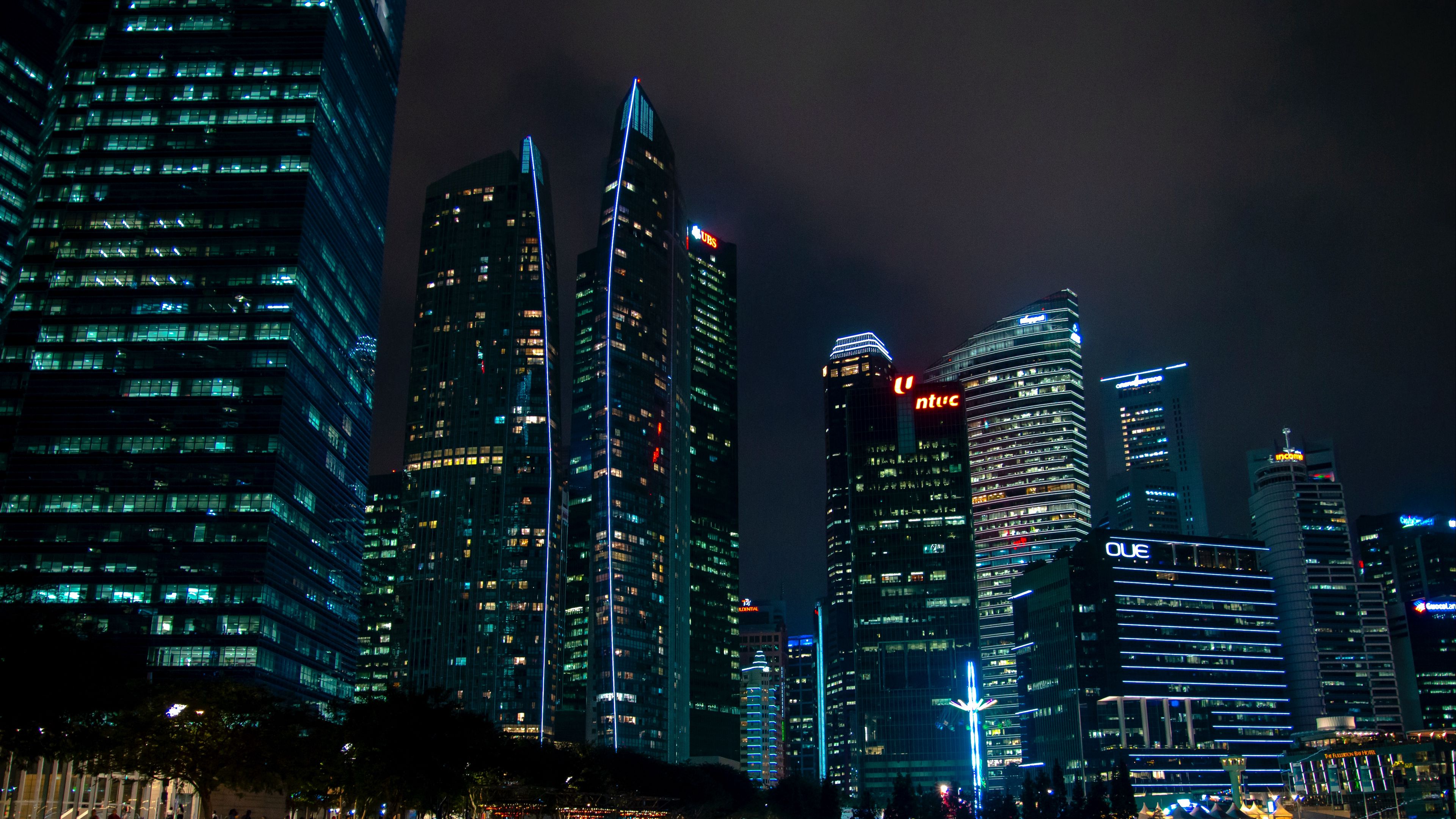 Night City Skyscrapers Buildings Photo HD & 4K Wallpaper Download
