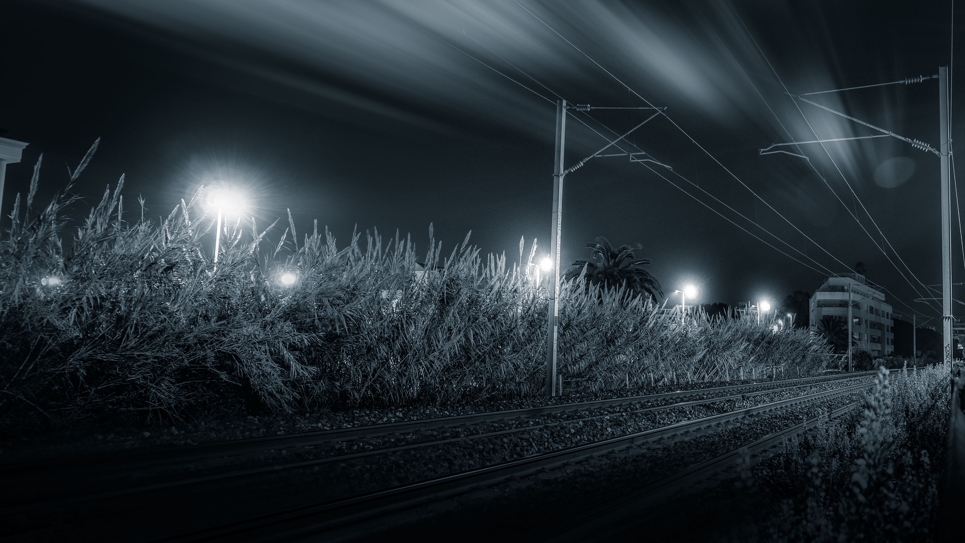 Railway Night Bw HD & 4K Wallpaper (3840x2160)