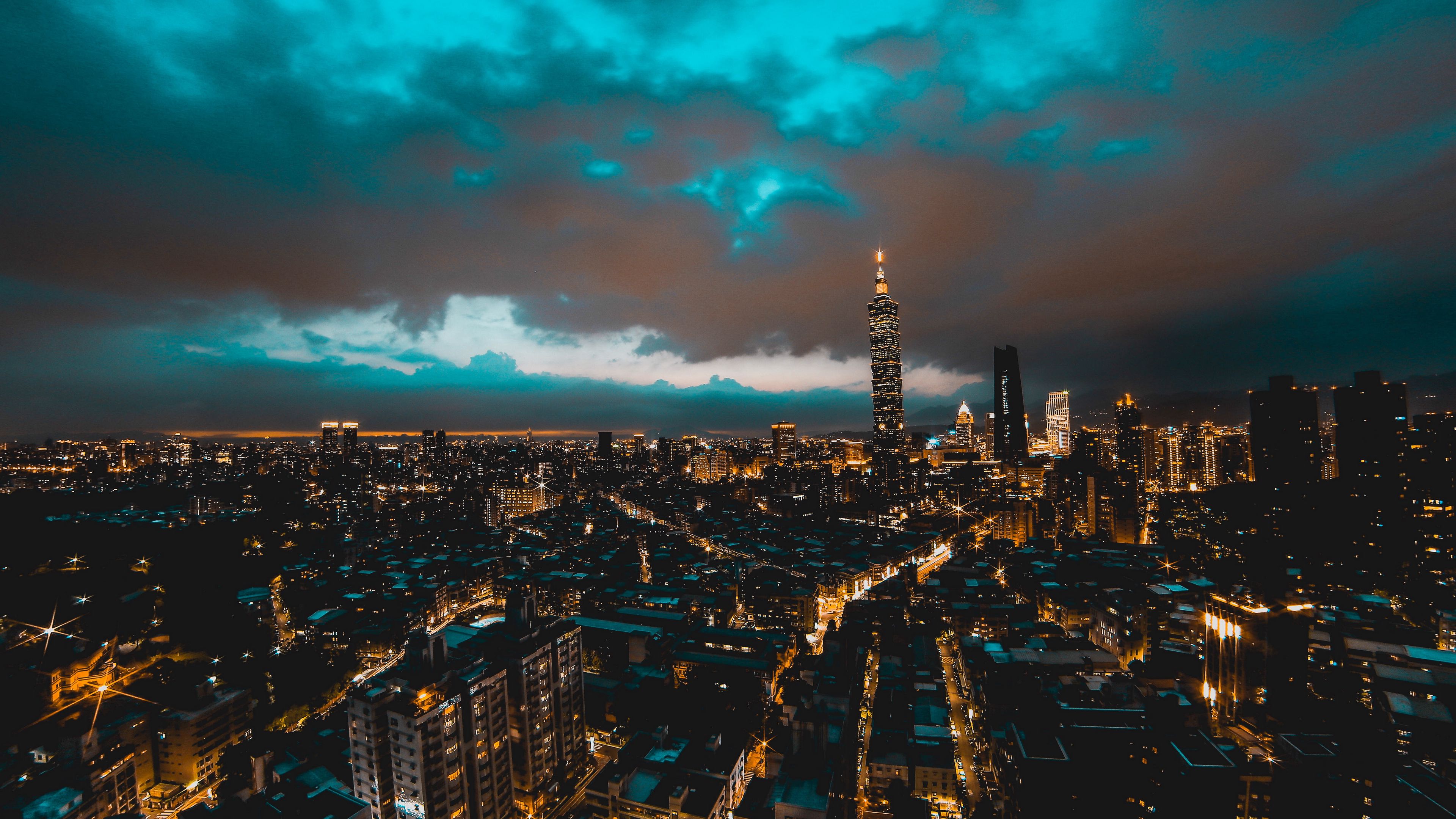Taipei Taiwan skyscrapers night buildings with glowing skyline 4K wallpaper 3840x2160