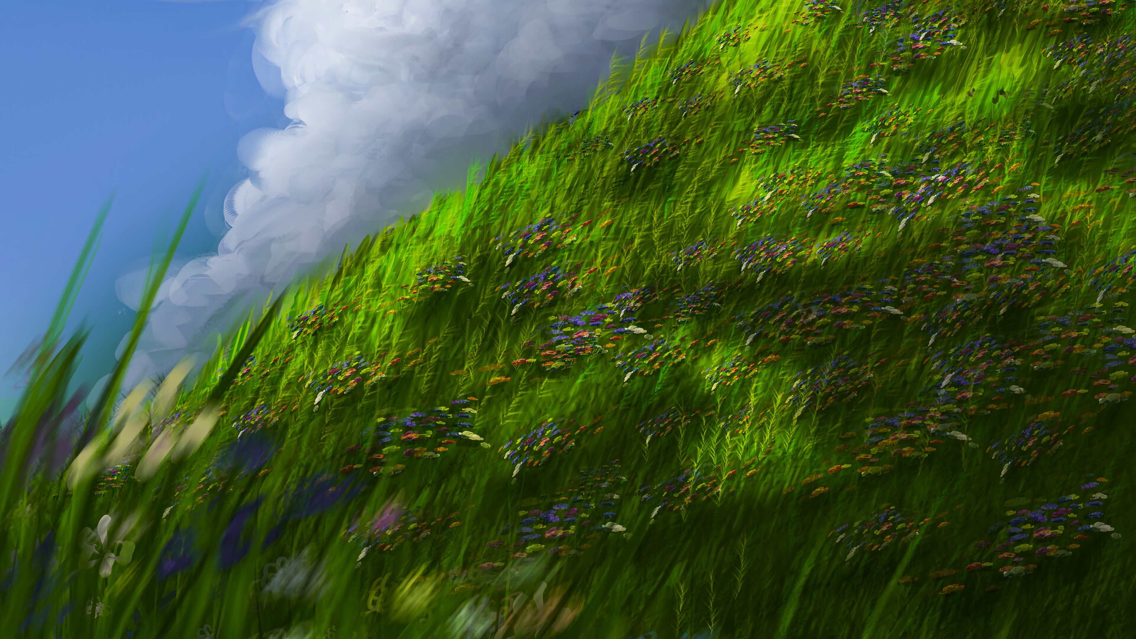 Slope Grass Flowers HD & 4K Wallpaper (3840x2160)