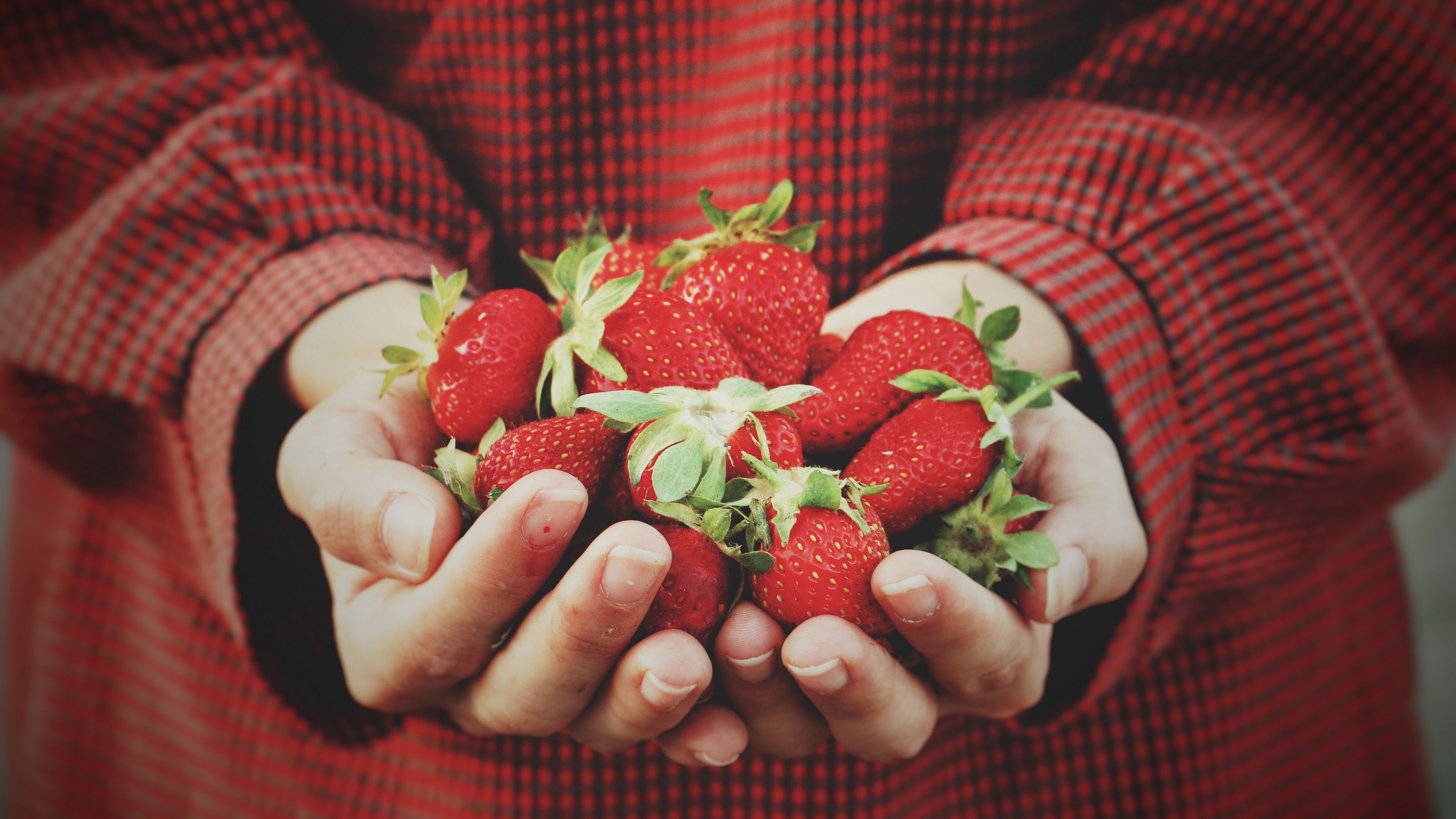 Strawberry Hands Berries Harvest HD & 4K Wallpaper (3840x2160)