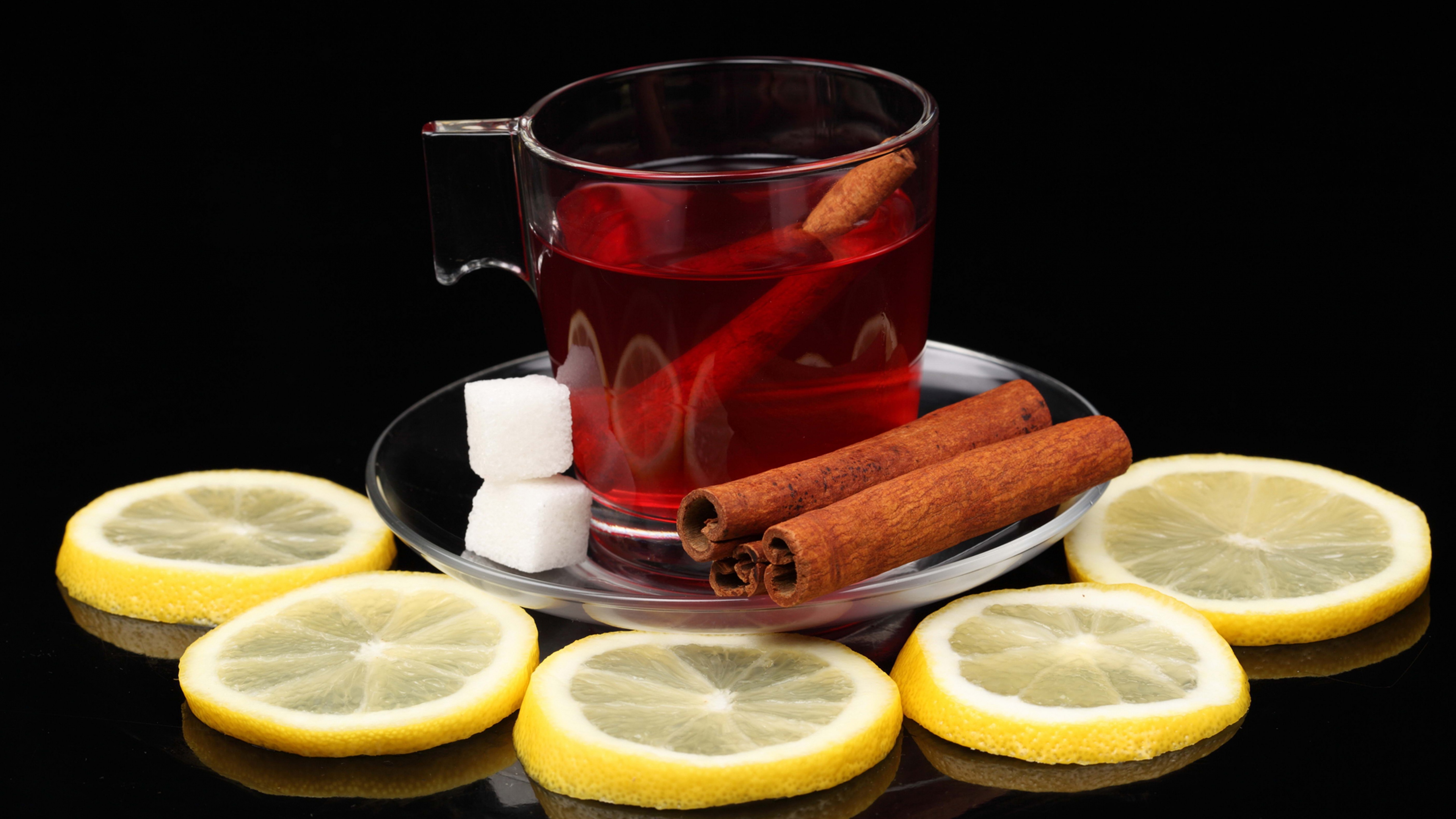 Tea Lemon Black Background Sugar Cinnamon HD & 4K Wallpaper (3840x2160)