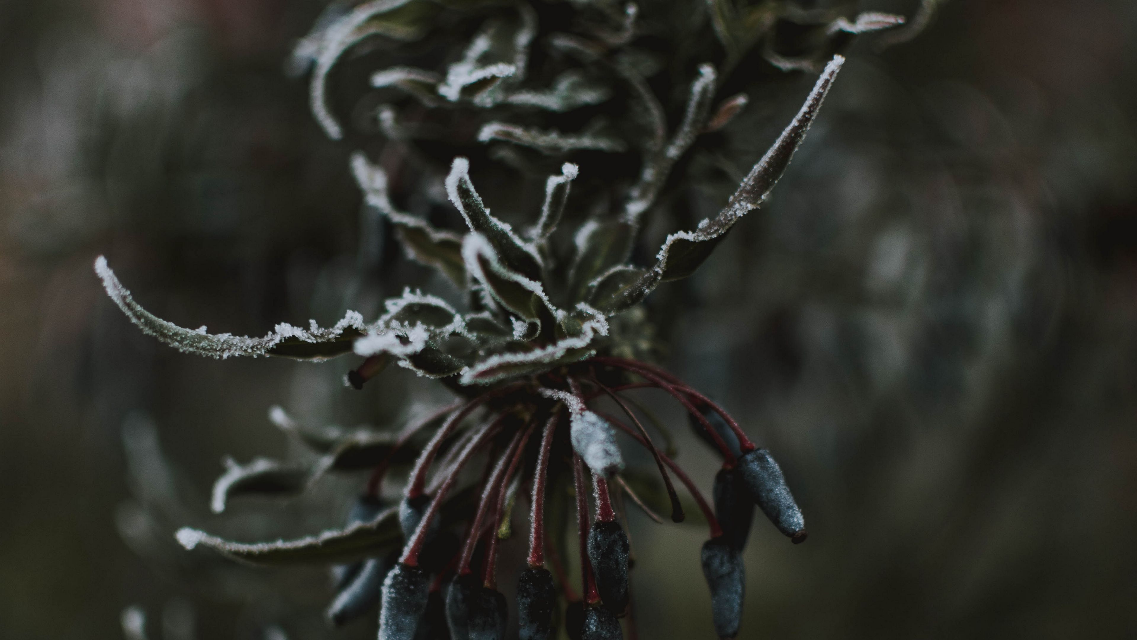 Leaves Ice Macro HD & 4K Wallpaper (3840x2160)