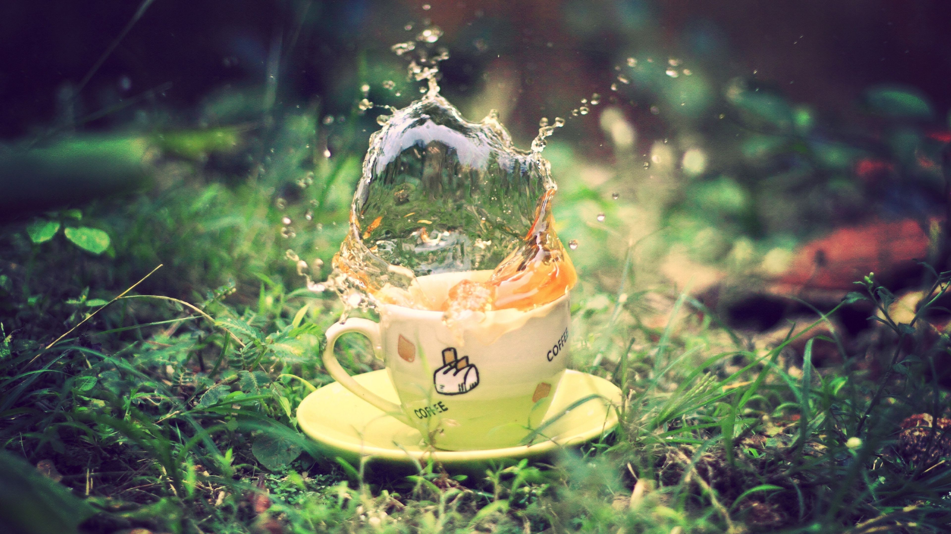 Tea Spray Earth Grass Saucer Green Cup 4K Wallpaper Preview & Details