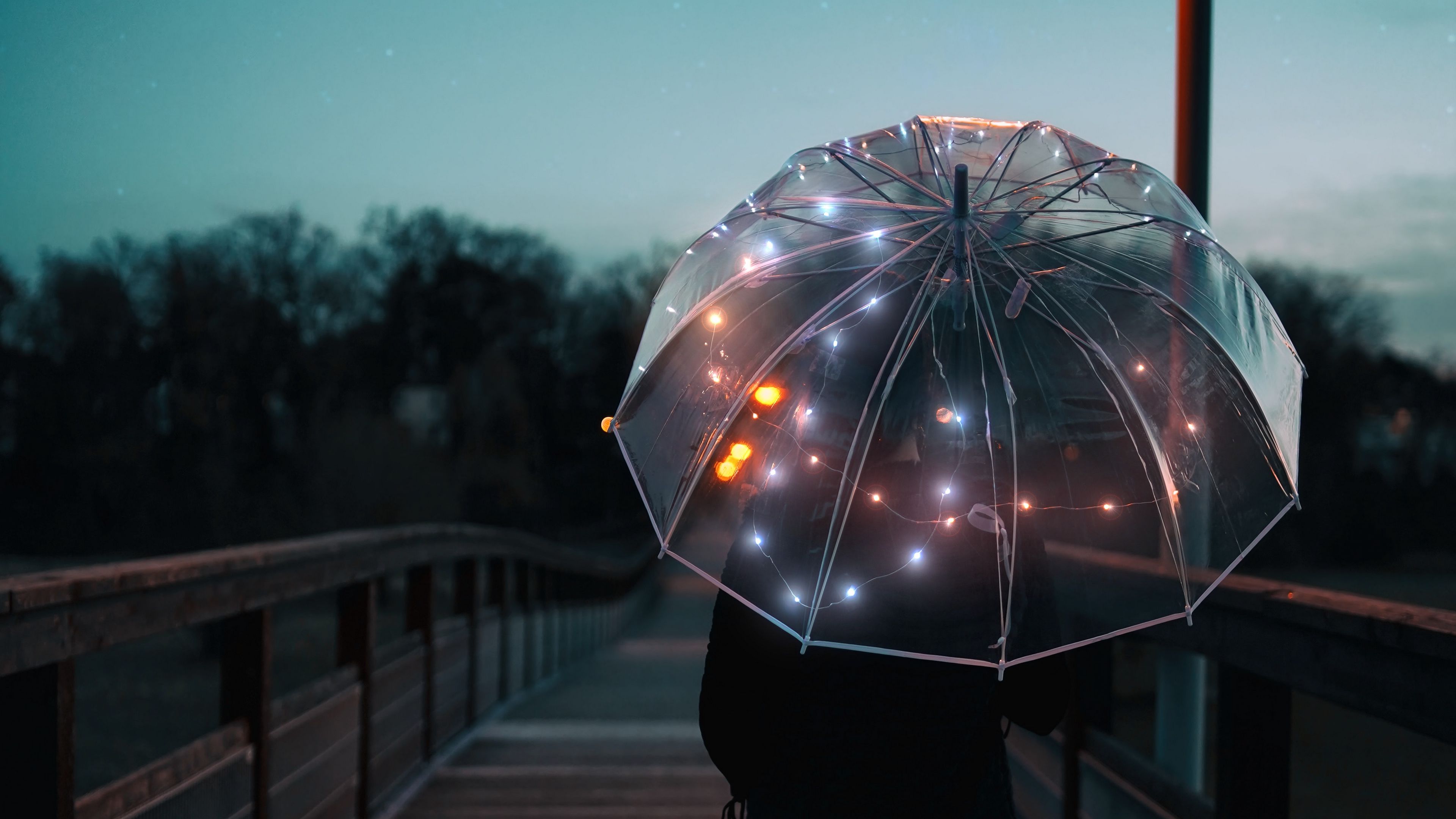 Umbrella Silhouette Twilight HD & 4K Wallpaper (3840x2160)