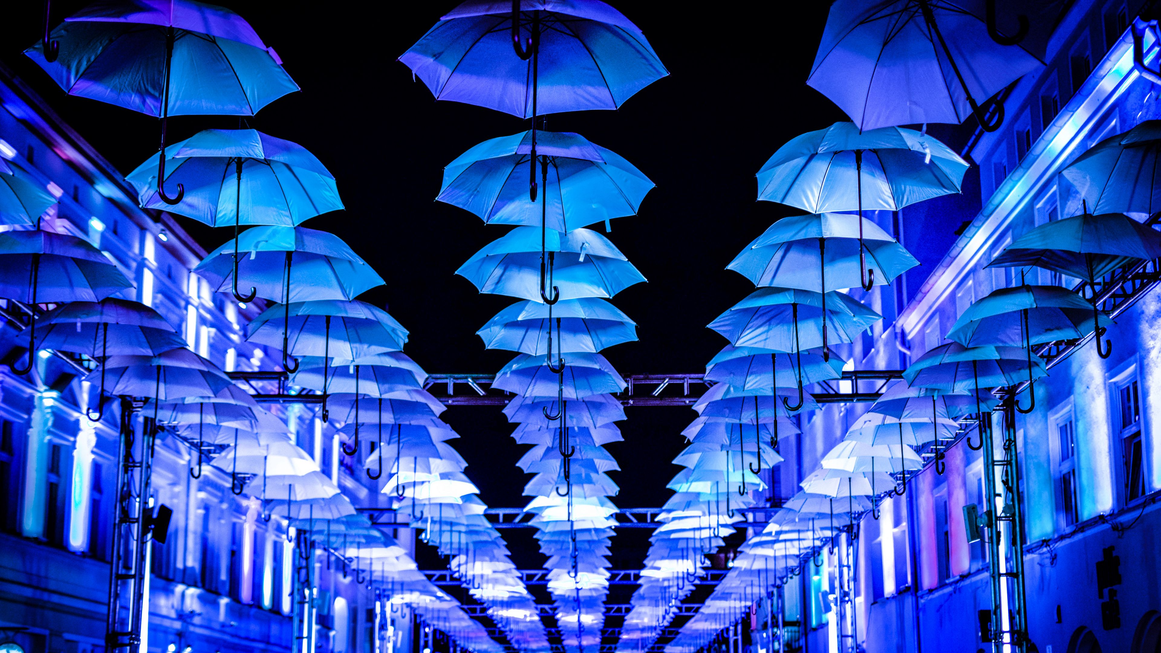 Umbrellas Scenery Street HD & 4K Wallpaper (3840x2160)