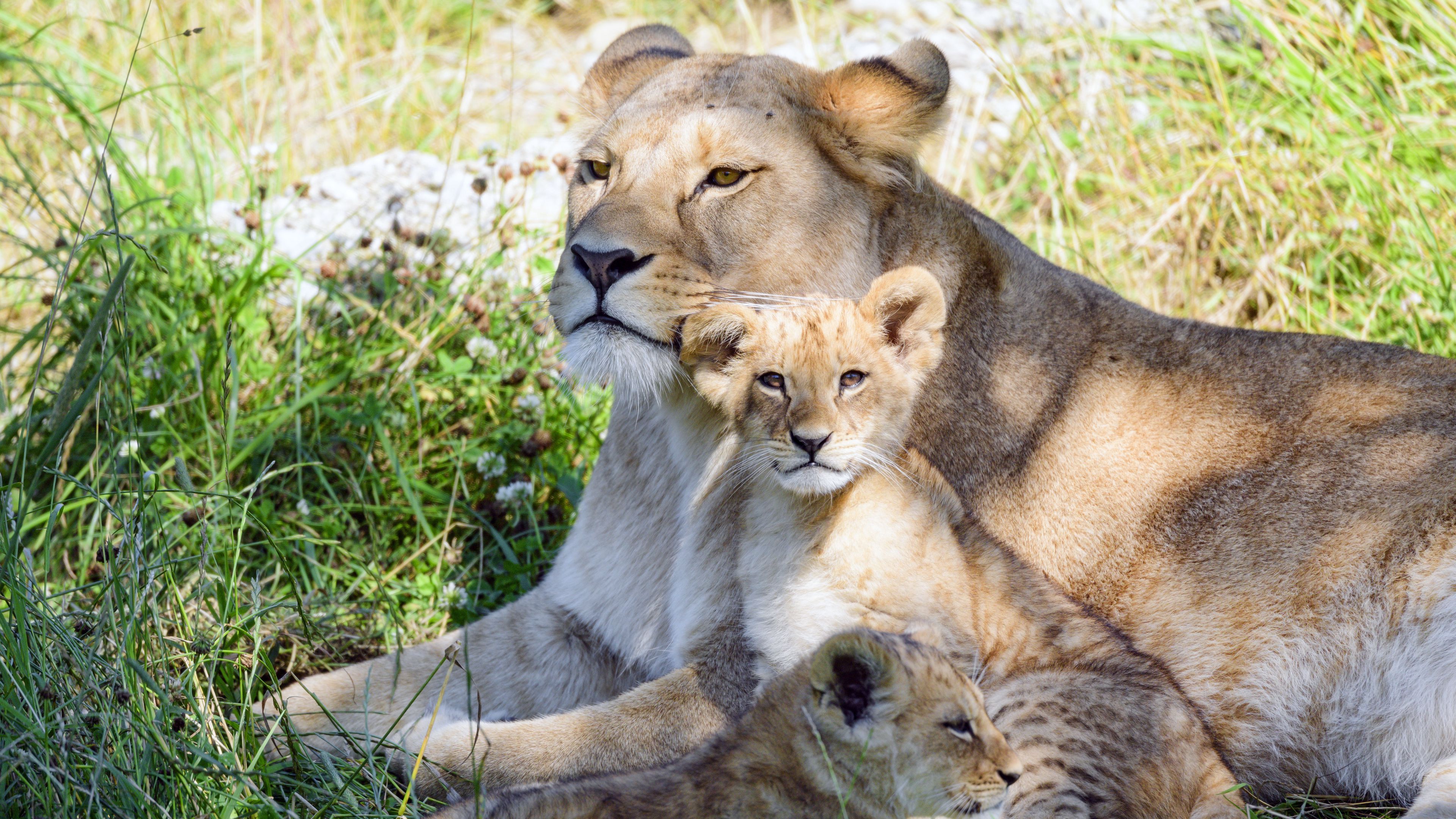 Lioness cub family image 4k wallpaper Description :