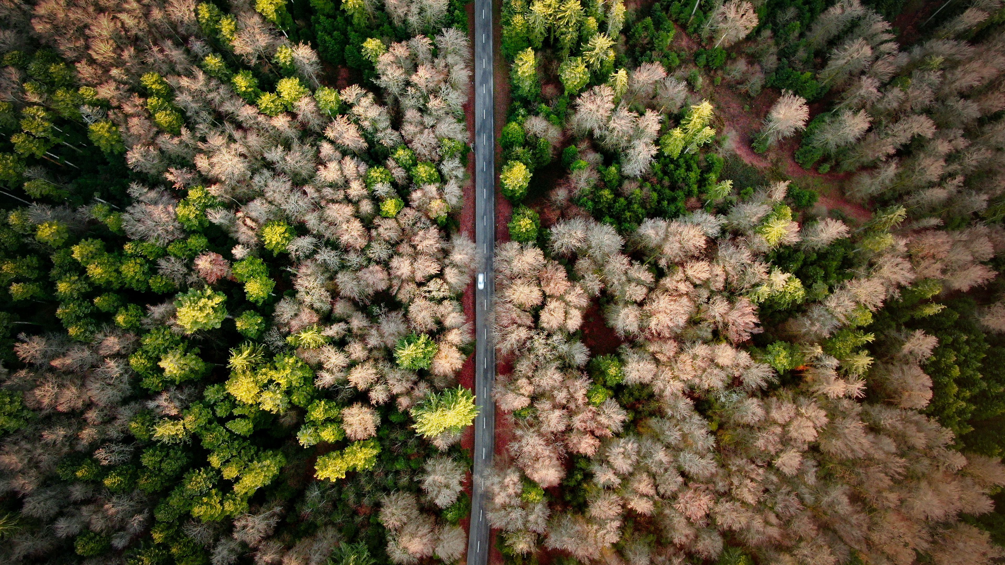 Road aerial view forest 4k wallpaper