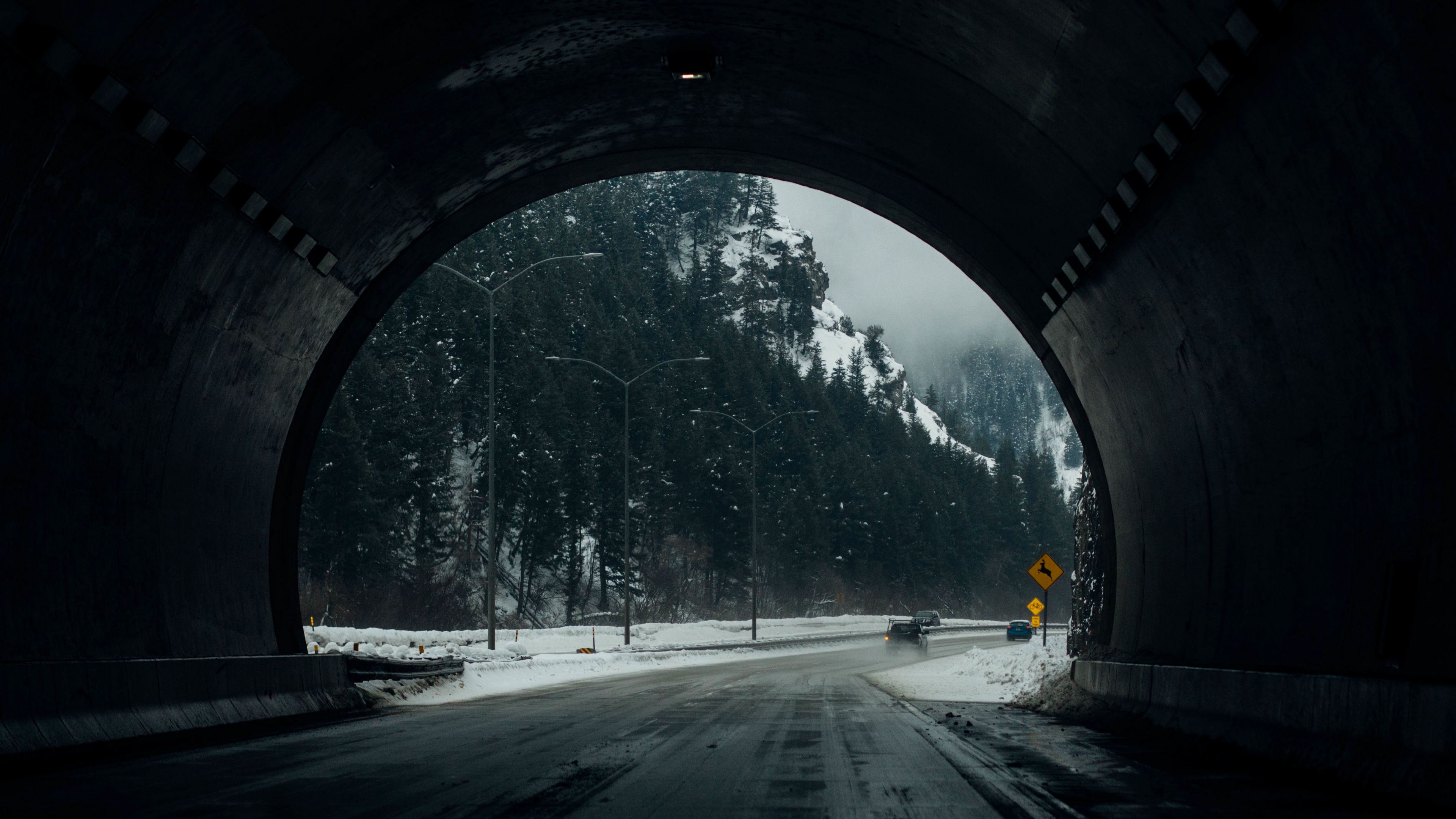 Tunnel road snow winter 4k wallpaper
